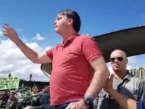 São Paulo, 19 Abr 2020 (AFP) - O presidente Jair Bolsonaro discursou neste domingo para manifestantes que,...